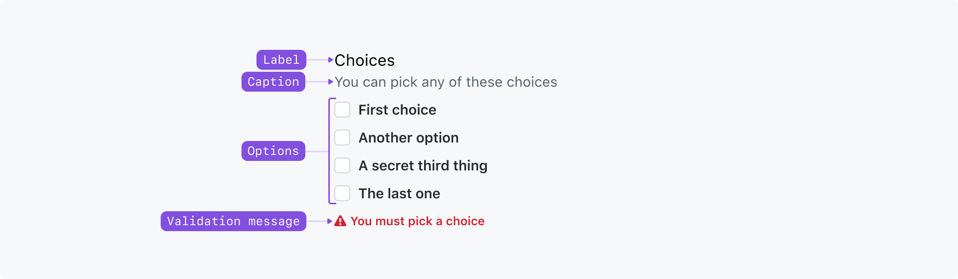Caption: May be used to provide additional context about the checkbox group when the label alone is not sufficient